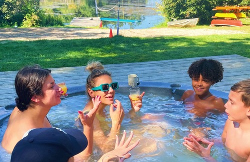 The outdoor lakeside Hot Tub and Sauna are both open all year 'round, yaaaaay!