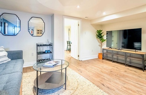 This lovely spacious 2 bedroom apartment is in a great location in the Trinity Bellwoods neighbourhood. The bedrooms each have a comfortable queen sized bed, and the suite can host up to 4 guests at a time. The space is connected to high speed internet and there's a smart TV in the living room for your entertainment. You'll love the fantastic location which is easy walking distance to the park.