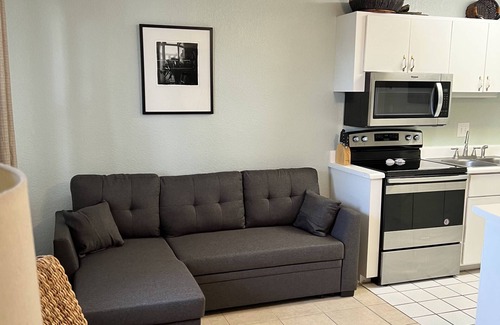 With 1 bedroom and 1 bathroom, there is plenty of space for up to 4 people. Everything you need to cook a meal is provided. This first-floor apartment features a master bedroom with a queen bed and television, the living room has a queen sleeper-sofa.