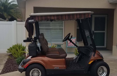 The two-person golf cart pictured is included.