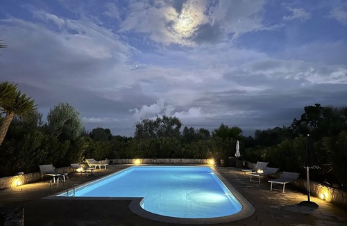 Trullo and villa with private, large built-in pool is ready for lounging, garden strolls amongst the many fruit and nut trees, including olive and fig, and cooking in your bbq and pizza oven. Located just minutes away from restaurants and attractions in Ostuni and Ceglie Messapica and a short drive to beaches and UNESCO world heritage site of Alberobello.