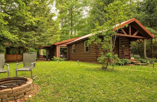 This place is tucked away in some quiet woods (hence the name). Our location offers a real home-like feel with nostalgic set up. In the cabin is many unique pieces: sliding barn door, local art, vintage furniture and Appalachian spirit. It features a breakfast nook with life-size windows to bird watch with your morning coffee. There is a screened in hot tub to soak and relax with your partner for your privacy. In the bathroom you'll also find a claw foot tub. Less than 5 minutes from Ash Cave and Cedar Falls.