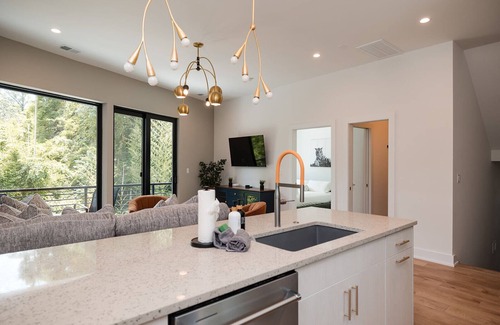 Designer kitchen with top-of-the-line KitchenAid appliances, quartz countertops, and everything you need to dine in style or host a friends and family.