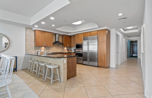 This luxury complex is the perfect escape from the stressors of daily life. Step out onto your private balcony with panoramic views of the striking white sand beaches and sparkling blue waters of the Gulf of Mexico. The perfect place for that morning cup of coffee or a great place to toast a beautiful sunset with a cool drink at the end of a perfect day. At this point you may want to relax in your personal hot tub, stretch out on a lounger with a good book, or cook up a delicious meal on your gas grill then enjoy the sights and sounds of the coast while savoring your meal from the balcony dining area. The choice is all yours! The private master suit offers a king bed, flat screen TV, reading nook, and a view of the Gulf with balcony access. The master bath includes a shower, granite double sinks vanity and walk in closet. The first guest bedroom has a king bed, flat screen TV and private bathroom with a whirlpool tub shower combo. The second guest bedroom provides 2 queens beds. This bedroom too has its own private bathroom with a walk-in shower. The living room has a sleeper sofa, and floor to ceiling glass wall which frames your views of the beach and the Gulf beyond. The dining area provides a dining table which seats 6, breakfast bar that seats 4, plus a coffee/wet bar area. The kitchen features top of the line Wolf & Sub-Zero stainless appliances and granite counters. Included are a gas cook top, stove, microwave, full size refrigerator, dishwasher, ice maker and wine cooler. The kitchen provides cookware and dishes to allow you the option of staying in and cooking your own meals. The laundry room contains a full-size washer and dryer. A half bath is located in the entry hall. This unit offers free WIFI. Complex amenities include: Gated entry & security, 1½ ft. deep Kiddie pool, 3 outdoor pools, one with zero entry, 2 heated indoor pools, lazy river, 3 hot tubs, 2 saunas, 2 steam rooms, outdoor play ground, lighted tennis courts, 2 fitness centers, covered parking, poolside snack bar (seasonal) and boardwalks straight to our amazing Alabama sugar sand beach. Dining, shopping, activities and entertainment are conveniently located near this complex. Guest Access: Entire condo and amenities, 2 parking passes are allowed for in the main garage any additional cars would need to ask for overflow parking passes available at the desk when space allows.