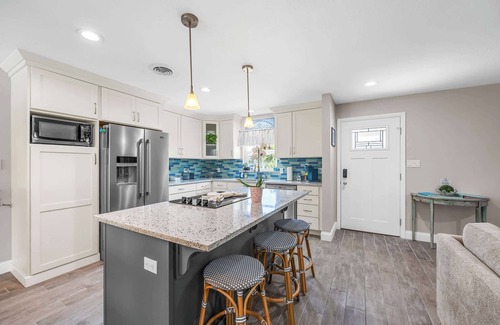 Cook with ease in the fully equipped kitchen, complete with stainless steel appliances, a coffee maker, and everything you need to dine in.