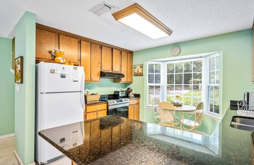 This great condo is located only 2 minutes from downtown Fairhope! Very convenient for shopping and dining, or just strolling around! These are duplex units (9a is on the left side on the front picture) located south of pecan avenue on section street by the fruit & nut district of Fairhope, you turn into a beautiful shaded cul-de-sac. Master bedroom is downstairs and features a queen bed and private bath with granite countertops and walk in shower. 2nd bedroom is upstairs and also has a queen bed. Hall bath upstairs with extra deep tub and shower. There is a flat screened t. V. In the living room, and a flat screen in the master bedroom and upstairs bedroom. Broadband and wireless internet is available for your use. Kitchen has granite countertops, and a darling breakfast nook situated in the bay window that looks out over the front yard. Fridge has ice maker. Electric range, microwave, coffee pot, and stainless steel double sinks. Deck in back features a small grill for your use. Washer and dryer are also available for your use, and are located in the garage. Sorry, garage is not available for your parking.