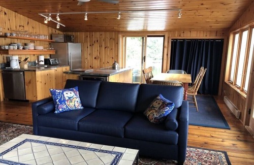 Just bring your clothes and personal items. Shallow and deep water is ideal for swimming. There is a floating raft and a separate swim dock with a dive tower (which is shared with the owner and their guests). There is an indoor boat slip in the large boathouse which can accommodate a boat up to 26 feet long. The small boathouse has a second floor bedroom with an ensuite 3 piece bathroom (with shower). The lake is all around you providing for full sun exposure from sun up to sun down. We provide access to a canoe, two or more one man kayaks and two stand up paddleboards (shared with the owners and their guests). The owners keep two boats in the small boathouse which they access without entering the living space of the small boathouse.