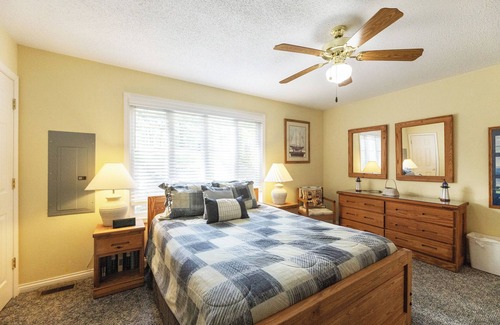 This beautiful two-bedroom, two-bath condo with a loft features a cozy fireplace in the living room and overlooks the bay. The upstairs bedroom offers a king-size bed, while the downstairs bedroom includes a queen-size bed, providing comfortable accommodations for your stay. For entertainment, the condo is equipped with two TVs, a VCR, and a DVD player. Conveniently located, you’ll be just a short walk from the lake, two outdoor pools, a playground, and boat rentals. Please note: this is a non-smoking, no-pets unit.