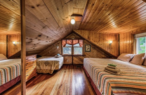 Amenities: Queen Bed in Main Room, Loft Room has King Bed and Twin Bed, Sleeper Sofa, One Bathroom with Jacuzzi Tub and Separate Stand-up Shower, Full Kitchen, Multi-Layered Decks, Propane Gas Grill, Wood Burning Fireplace, Wi-Fi, Streaming Capabilities, Central Heat and Air Conditioning, Pet Friendly (with additional fee)
