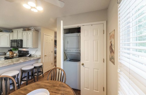 This recently updated two-bedroom condo is perfectly situated above the harbor, offering porches on both levels for outdoor enjoyment. Downstairs, you can relax on the side deck with its gas grill and dining table or unwind in the newly screened-in back porch. The spacious living room features a cozy gas fireplace and a queen sleeper sofa for additional guests. Upstairs, the master bedroom has a king bed, while the second bedroom is furnished with two twin bunk beds; each bedroom also has its own private bath. Entertainment options include three TVs with local cable and a DVD player. Located in the heart of Green Turtle Bay, you’ll be just steps from the outdoor pool, tennis courts, spa, and playground, and within walking distance to the ship’s chandlery and boat docks. This is a non-smoking, no-pet unit; however, the owner is a pet owner, and while our housekeepers maintain a high standard of cleanliness, we cannot guarantee the condo is completely allergen- or dander-free.
