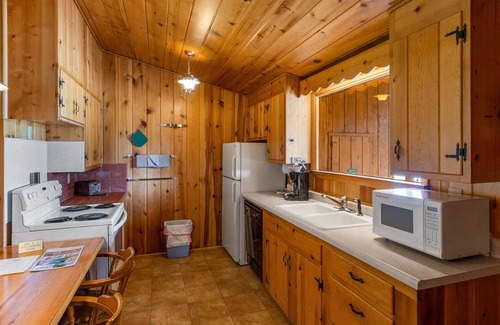 Plan your ideal Montana adventure today. The Mountainside I deluxe cabins offer spacious 2-bedroom log cabins and feature a full kitchen, fireplace, comfortable living room, front and back porches and a roomy bathroom with a separate tub and shower. The kitchens have standard appliances including a dishwasher. Each bedroom has two double beds. Cabins also has a sleeper sofa double in the living room.
