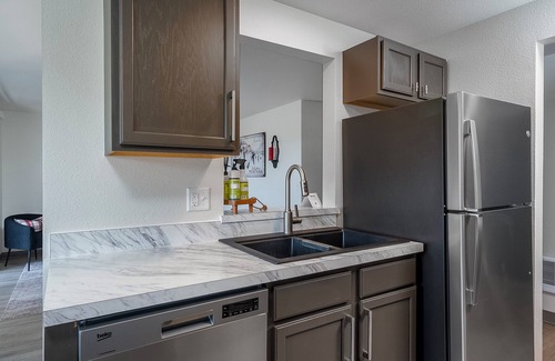 Unwind in this beautifully styled retreat, perfect for a relaxing stay. The living space features a warm and inviting sofa, plush accent chairs, and a modern, open layout designed for comfort and conversation. A stylish coffee table and soft area rug add to the cozy ambiance, while soft lighting enhances the serene atmosphere.The bedroom offers a peaceful escape with a luxurious queen-sized bed, crisp white linens, making it the perfect spot to recharge after a day of exploring. With thoughtful decor, contemporary furnishings, and a welcoming atmosphere, this space is ideal for a restful and memorable stay. Book now and experience comfort and style at its best!