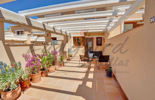 Beautiful chalet tucked away in a very well maintained urbanisation conveniently located for the beach and the town centre.The main living area is open planned and spacious, with American style kitchen, dining area and lounge area. There is a cloak room also downstairs. You have the great benefit of seating terraces both front and back, so you are able to enjoy the glorious weather all year round.The second floor is made up of the master bedroom with private terrace giving you spectacular views towards the Castle, Marina and beach. The 2nd bedroom has one single bed and bunk beds, it also has a small terrace giving you wonderful views up the Montgo mountain range.There is hot and cold air conditioning, gated complex with parking, wifi, mosquito nets and international tv channels.The chalet is available for monthly winter rentals and utility consumption will be charged additionally at the end of your stay.