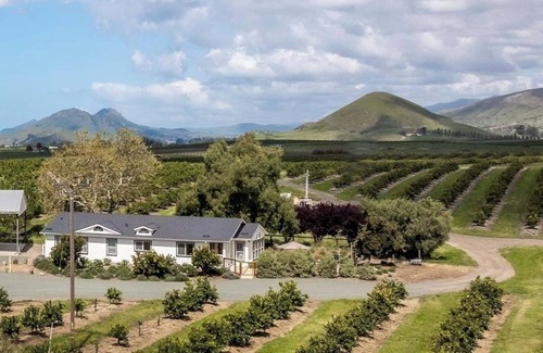 “Peaceful Retreat on 41 Acres” Nestled in the heart of Edna Valley wine country, the Farm House and Orchard House offer a grounding getaway for wine-lovers and families alike on an up-and-running lemon orchard. This particular listing is for two homes on the same property and is perfect for larger groups or multiple families that want a little extra space. The houses are approximately 50 yards from each other and have a combined 7 bedrooms and 4 bathrooms. Perfectly positioned 10 minutes from Downtown San Luis Obispo, Cal Poly, and local beaches; the houses give you the serenity you crave with access to Central Coast adventure. As for the wine-lovers, Edna Valley is home to 23 tasting rooms and our next-door and across the street neighbors happen to be wineries (Saucelito Canyon and Edna Valley Wineries) – so we would say you’re off to a good start! Additionally, it is a short drive to just about anywhere on the central coast including Lopez Lake, the village of Arroyo Grande, Avila Beach, Morro Bay, San Simeon, Hearst Castle, as well as Paso Robles and the famed North County Wine Trails.