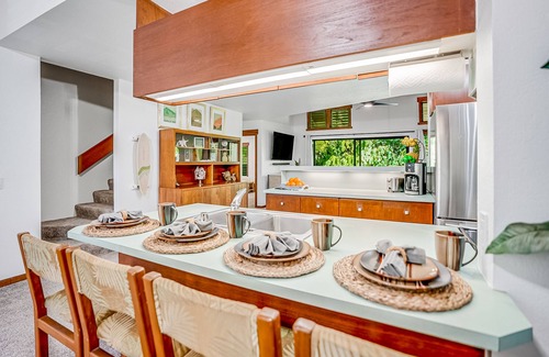 Tropical breezes, lush landscaping, and beautiful on-site amenities await at this two-story condo in Waikomo Stream Villas, enviably located in the very heart of Poipu on Kauai's sunny South Shore.