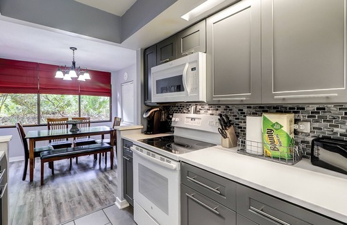 Treetops is a wonderfully leafy complex located alongside the Fish Island Sea Pines Forest Preserve on the south end of Hilton Head Island. It boasts fantastic access to the Vandermeer Tennis Center (a quarter-mile) and Coligny Plaza (one mile), the latter of which serves as Hilton Head's downtown district with dozens of shops, restaurants, and conveniences. Coligny Beach Park is a mile away as well, easily reached with the two provided (adult-size) bikes.