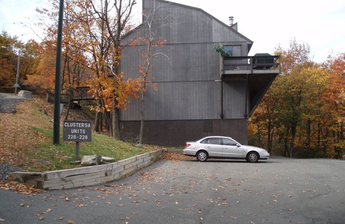 Short walk to slopes from this spacious 4 level townhouse with all the comforts of home! Features great room with cozy wood burning stove, WiFi, A/C, TV, DVD, VCR & games. Dining area has 2 large tables to accommodate group. Full kitchen & ½ bath are on the same floor. Outdoor deck overlooking mountain area includes gas grill & patio chairs. Many sleeping options for large groups (MAX of 10 adults or 12 in group if adults and children). Upstairs - loft bedroom with queen bed & full bathroom. Below the main level are 2 bedrooms (1st has 2 sets of bunks, 2nd room with queen bed, desk, TV), washer/dryer, & full bathroom also on this level. Lower level has slider door with access to parking lot & 2 rooms (1st has 2 queen beds behind french doors, 2nd w/ pull out couch). This area also has TV, DVD & Foosball table. High chair, pack & play, baby gate available. Clubhouse has indoor pool, jacuzzi, saunas, tennis court (indoor and outdoor), indoor basketball & weight room. Linens included. 25 or older to rent. No smoking or pets. No bachelor parties, or prom groups.