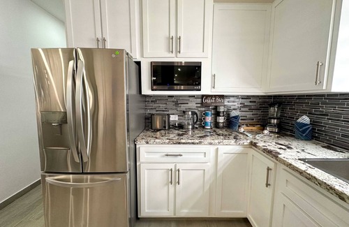 The dining area has a dining table set to seat 6 people. The kitchen area has wooden cabinets with complimenting neutral colored granite counter tops with microwave, refrigerator, stove and oven . You will find it all; dinnerware, flatware, glasses, wine glasses, pots and pans, cooking oil, salt, and pepper. Living area is comfortable furnished, has a 55" smart tv with streaming service like Netflix, Disney Plus, and you can find board games. The house has basic amenities like hair dryer, iron and iron board and mini split a/c in all bedrooms and common spaces.