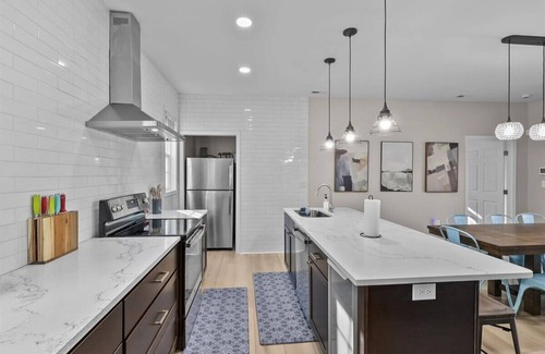 Escape to Leitchfield, KY, and enjoy this spacious two-floor retreat where comfort meets adventure. Relax in cozy living areas, cook in the fully equipped kitchen, or enjoy games and a dedicated workspace. Outside, a large gravel yard with fire pit invites stargazing nights. With parking for 4–5 cars, high-speed Wi-Fi, and flexible stay options, this guest-fave rental is perfect for families, remote workers, and adventurers exploring Nolin Lake, Rough River Dam, and local festivals! Book now!