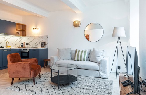 A beautiful 2-bedroom architect's apartment in the heart of the "carré d'or" district, with air conditioning in each room and a parking space in a secure car park.It is 50m from the pedestrian street and its restaurants and 2 minutes walk from the beaches of the Promenade des Anglais. You will feel like on the ground floor of a villa in the city center, in a beautiful building set back from the rue de la Liberté.SpaceWelcome to our apartment into an exceptional location,Located on the ground floor, you will find all the comforts you need: space, proximity to touristic places, air conditioning, equipped kitchen, washing machine, Wi-Fi, TV...The apartment includes a beautiful living room with sofa bed and open fitted kitchen, 2 bedrooms, each with its own bathroom and WC.The equipment is top-of-the-range: bathroom with rain shower and anti-fog mirror, "Emma" brand bedding for peaceful nights and decoration by an interior designer.The fully equipped kitchen includes dishwasher, combi oven, hob, Nespresso coffee machine, kettle, toaster and washing machine.The parking provided is unlimited access for one vehicle to the Interparking Grimaldi car park.The parking is less than 2 minutes walk from the apartment.AccessThe apartment is fully equipped. Bed linens and bathroom towels are provided, and you will have access to the complete accommodation.InteractionBnb Groom Services’ team is glad to greet you in Nice.Keys will be available directly on site. Don't hesitate to share you arrival information as soon as you have it.We will be there to advise you before and during your stay, available by phone or by email to answer any questions and make sure you spend a great stay at your home away from home.NeighborhoodMassena Square and « La Piétonne » (Massena Street, a pedestrian street with lots of shops, cafés and restaurants) are popular and lively areas of Nice. This situation offers you the opportunity to do all your food shopping by walking, as well as a multitude of restaurants and many shops… and of course beaches and the Promenade des Anglais at 5 minutes on foot. Walk along Massena Square and you will arrive at the entrance of the Old Town and its famous flower market. Everything is on your doorstep to fully enjoy your stay in Nice.TransitAccess to accommodation from the airport is possible by tram: take the line n°2 in direction of Port Lympia and stop at Jean Médecin. Journey takes only 30 minutes and this stop is 350m away from the apartment.You can also ask us to arrange a private car transfer from the airport to the apartment.Train station « Nice Ville » is 15 minutes away on foot, allowing you to discover Antibes, Cannes, Grasse, Monaco, Menton or even to go in Italy easily.Access to the building is also possible by car. You can park in the car park called Interparking Grimaldi.IMPORTANT - RULES OF PROCEDURE :For security reasons, before arrival an online check-in should be completed via our Yaago application in which the person in charge of the booking should provide identity document.The accommodation should be returned in a suitable state of use, respecting the premises, the neighborhood, as well as basic rules of cleanliness and hygiene.Parties and noisy evening gatherings are not allowed.Smoking isn’t allowed inside.Non-compliance with these instructions may result in a deduction from the deposit or cancellation of the stay.Thanking you in advance for your kind collaboration.