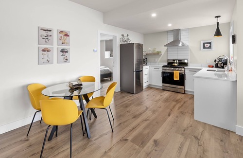 Welcome to Uncorked Escape, a newly constructed two bedroom suite located in beautiful Naramata, with well equipped kitchen, tastefully decorated living/dining areas and outdoor patio. Enjoy the stunning views of Lake Okanagan, the surrounding mountain vistas, estate vineyards and bountiful orchards, as far as the eye can see. And.... all from the brand new hot tub perfectly situated to take it all in. Jump on your e-bikes (or rent) and ride the historic "Kettle Valley Railway" trail that is located a stone's throw away, or hike/bike the infamous "Three Blind Mice" trail located a stone's throw to the south. This suite in the lower level of this beautiful conforms to the new government regulations, so you can book with confidence.