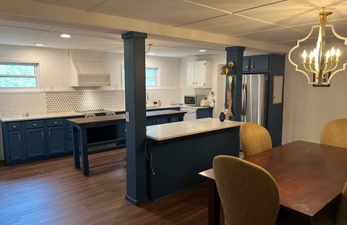 Experience the magic of fall in the mountains at our cozy retreat. Nestled among vibrant foliage, our home offers a crackling fireplace, and the perfect blend of comfort and rustic charm. Enjoy crisp autumn mornings on the deck, explore scenic hiking trails, and unwind with a hot drink as you take in the stunning landscape. Embrace the season in a place where every moment feels like a fall postcard. Todd is waiting for you at this 3-bedroom house. With a king bed, full bed, and queen bed, guests will have plenty of space to relax. Enjoy the superb amenities like AC units, heating, WiFi, and a fitness equipment. The 2 bathrooms come equipped with a hair dryer for added convenience. We're happy to assist with any questions while you stay at our house.
