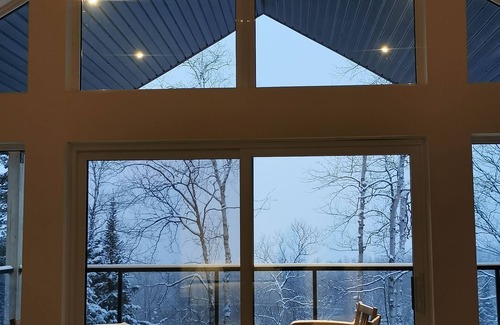 Each accommodation is located upstairs and has its own large terrace to enjoy the surroundings. The view overlooks Mont-Sainte-Anne, which will dazzle you with its lights in winter. You can see the St. Lawrence River all the way to Quebec City, which lights up in the evening.