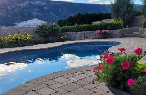 Discover the beauty of Lake Country from this 3-bedroom suite. Nestled in a serene location, this amazing property offers a soothing escape for guests. Walk out to the salt water pool, or view the stunning sunsets from the hot tub. Wine tours links provided upon request. Golf courses near by, hiking trails and rail trail for cycling just steps away.