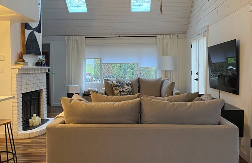 A renovated home creatively interior designed by renowned curators, Jennifer Scott & Rachel Harrison encompassing a variety of themes relevant to modern design. Enjoy a space that isn't simply spacious, but entrancing; one that allows a family or a group of friends the opportunity to connect and relax. The home features picturesque water and mountainous views offered through large windows along with skylights that bring in soothing natural light.