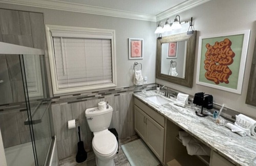Master Bedroom (Pop is King) - King Bed, Desk with Additional Monitor, 50” Smart TV, Ensuite Bathroom with Soaking Tub and Rain Shower