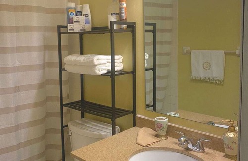 After you enter the main door, you will see a foyer with a closet where you store your outerwear and shoes. Then you will inter second door that leads to the main lower level. The main level consists family living room, one bedroom, half bathroom, dining room, and kitchen. The upper level has two bedrooms and both have TV’s with a complementary of Netflix, one full bathroom, and a laundry room with a washer/dryer.