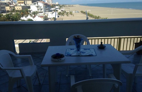 Superattico on the sea in the center of Margherita di Savoia third floor, only 100 meters away from the thermal baths. It has two bedrooms, a large living room, kitchenette and bathroom. Outside, a veranda of 100 square meters overlooking two sides. NE and NO to enjoy the beauty of the sunrise with the rising of the sun and the colors of the sunset on the splendid sea of the Gulf of Gargano All renovated and tastefully decorated.