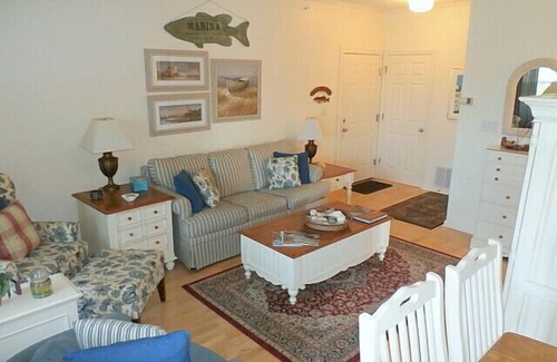 This second floor two bedroom condominium in the popular Villages at Five Points community is the perfect spot for your vacation. The open living area leads into a dining room and adjacent kitchen. Two bedrooms with two full bathrooms comfortably accommodates four people. Additionally, there is a queen sofa bed in the living room if you need to sleep two more. The amenity-rich Villages at Five Points has a community pool, tennis courts, walking paths and easy access to dining. Just a quick ride to downtown Lewes or the Boardwalk in Rehoboth. This property is available with a three night minimum all year long. Any bookings of 7 nights or more will receive a discount off of the daily rate. Please ask your agent for details. All guests must supply their own sheets, towels and beach towels or OPT in for our linen rental package. This property does not allow pets