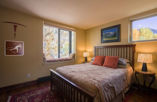 Relax in our quiet condo with a queen pillow top bed, leather couch (converts to a queen bed), flat screen televisions, and corner balcony. Skiers/boarders, as well as mountain bikers and hikers have lift access 4 blocks away. Hikers and bikers also have access to trails right from the property. At the end of your busy vacation day, relax in the Muscatel Flats hot tub just steps away from the San Miguel River.