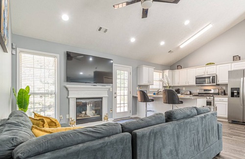 Renovated in 2021, this stunning modern home is just ~20 minutes from the airport in a quiet residential neighborhood. This home truly encompasses the warmth you may feel entering your own home, and it has enough space to allow each guest to fall in love with their unique section.