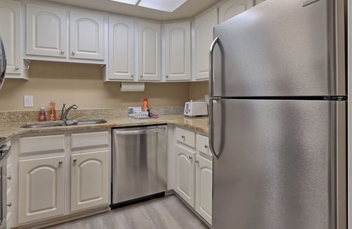 Located on the second floor, you have a lovely balcony from which to enjoy the views, dine outdoors, kick back with a good back, or enjoy wine and cheese! The inside features a primary suite with king bed and an updated full bath. There is a well-equipped kitchen with new wood flooring, stainless steel appliances, and granite countertops. Take time to relax or host game or movie night in the spacious living room that includes a queen sleeper sofa.
