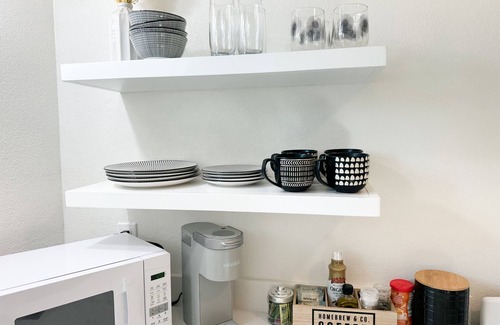 Our apartment has 2 bedrooms each with a queen bed fitted with crisp white linen and comforters. Each room has window curtains to help block out the sun which is helpful for our travel nurses working night shift. Each bedroom has a closet with hangers for clothing.