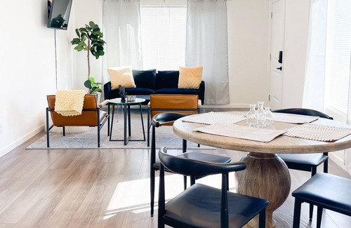 The space includes a modern Livingroom with a couch and chairs. The home has 3 smart TV's one located in the Livingroom and the other two are located in bedroom #1 and bedroom #3. Just past the Livingroom you will find a dining table and well stocked kitchen. Our kitchen features new appliances and dishwasher. We have a coffee maker, toaster, and rice cooker along with pots/pans and other utensils you may need to prepare meals. Bedroom 1 has a queen bed with desk, TV, full size closet. Bedroom 2 has a queen bed with desk, and full size closet. Bedroom 3 has a full size bed with a TV and full size closet. Our laundry room with washing machine and dryer is located between the kitchen and bedroom #3. The home has 1 bathroom with a tub/shower combo. The home has been completely remolded and has a new central air and heating unit. The back yard space is fully fenced with a seating area and hammock. Guests will have garage access during stay. This home is located in a high traffic and busier area of Modesto.