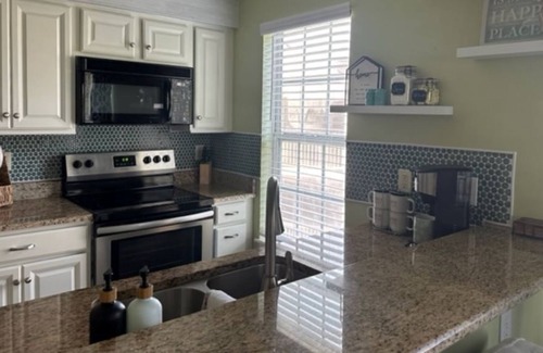 KITCHEN: Stove/oven, refrigerator, microwave, dishwasher, dishware/flatware, cooking basics, coffee maker, ice maker