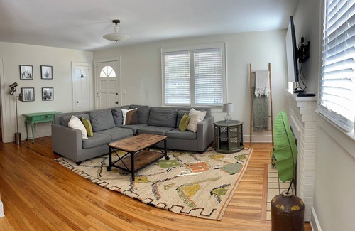 Beautifully renovated 1950s 3BR/2BA home perfectly located on the park in vibrant Park Circle. This charming home features a sleek kitchen with granite countertops, stainless steel appliances, and a clean, minimal feel. Enjoy a cozy open living space with a Smart TV, dining table for six, shaded deck, fenced-in backyard, and a classic porch swing—perfect for relaxing and watching the neighborhood buzz.