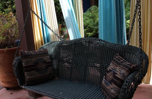 The Spanish studio is in a private Spanish courtyard on the 1st level (one apartment on top of the home) and next door to a Spanish home. It has a patio with a porch swing and an outdoor couch that is perfect for drinking coffee or just relaxing and enjoying the bubbling fountain or the chirps of the birds.