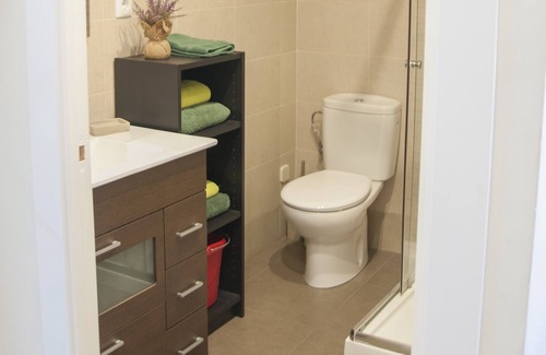 The apartment has two bathrooms with shower. It also has two living rooms, a sofa bed in each, 42 "TV and air conditioning.