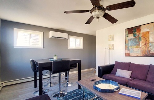 One bedroom with a King size bed, another one with a full size mattress, a sofa, and a futon available. The unit has free wifi, with an HDTV streaming Netflix, Hulu, Disney+, and ESPN+ (included). With an in-unit washer and dryer, the spot is great for guests looking for place to stay the winter in Milwaukee!