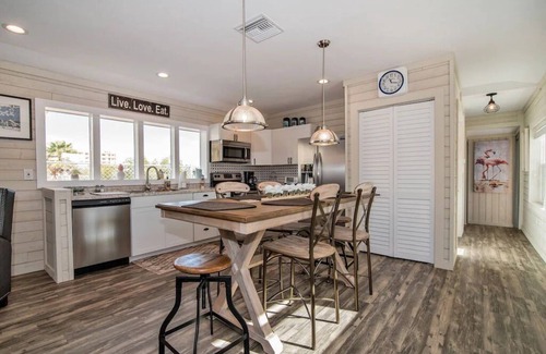 This beautifully remodeled spacious 2 bedroom Seaside suite is nestled in the quaint beach community of Indian Shores Fl. This upscale private apartment has some views of the inter-coastal waterway, right off the back yard. This absolutely beautiful suite has an open floor plan with all the comforts of home. Your beach access is just steps away.