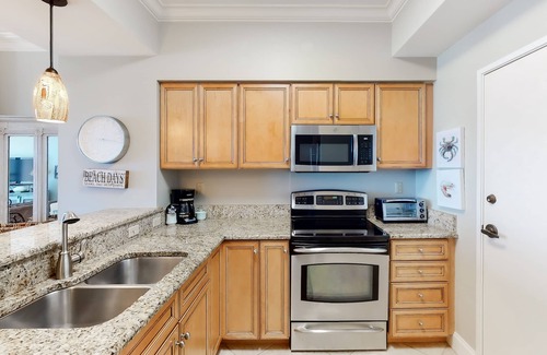 This upscale, beachfront condo is ideal for your next family vacation along the Emerald Coast. The upgraded, full kitchen features stainless steel appliances and all the accessories you need to prepare cost-saving meals during your stay. Dine together or play board games at the adjacent table with seating for four. Open the sliding glass door and let in the sounds and scents of the adjacent beach while you relax in your sunny living room, or step out onto your furnished balcony and enjoy the spectacular Gulf view. Downstairs, guests can enjoy the many deluxe amenities including multiple beachfront pools, a beachside restaurant/bar, tennis and fitness facilities, and a tropical bar.