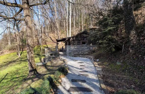 The main home offers a covered walkway with a walking path to Downtown. Cabin guests are welcome to use this path to walk to shops and dining in Downtown Bryson City.