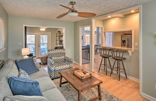 Find your next lakeside haven at this upscale Gainesville vacation rental escape! This 3-bed, 3-bath cabin was completely remodeled and boasts 1,736 square feet of well-appointed living space complete with a fully equipped kitchen for some home cooking and large windows for fantastic views! Kick back on one of the many outdoor decks or hit the lake with a private dock! Head over to downtown Gainesville for some local eats then indulge in some retail therapy at the Lakeshore Mall!