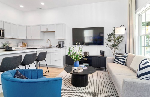 Enjoy a bright, open layout with modern finishes and comfortable, stylish furniture. The kitchen is fully stocked and features a large island—ideal for cooking meals or gathering with friends and family. The living room includes a smart TV and plush seating for a relaxing night in.
