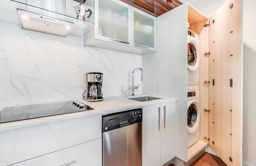 Step into this vibrant modern industrial-style suite in Downtown Victoria. The Jukebox is a mixed-use 9 story 215-suite, newly built condo building with a full-sized, fully equipped gym and an inviting courtyard with fountain and seating. The unit offers 1 bedroom and 1 bathroom, a comfortable living room, functional kitchen with 2 person eat-up bar & deck and in-suite laundry. A great rental for business travelers or guests looking to be close to town and accessible amenities.