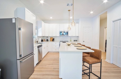 This beautifully designed home offers a modern urban retreat with a touch of Texas charm. With 4 bedrooms and 3 full bathrooms, the house comfortably accommodates up to 15 guests. Each bedroom is thoughtfully furnished with comfortable beds, stylish décor, and plenty of storage space for your belongings.
